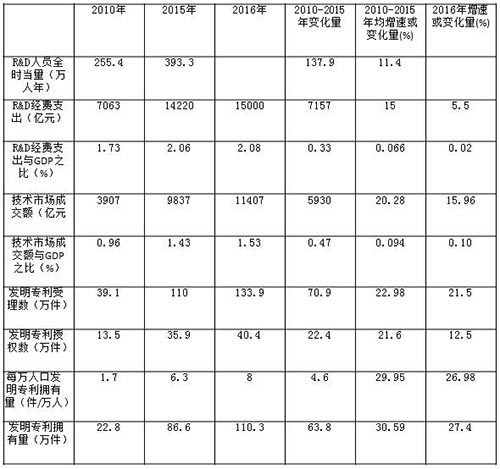 表2 科技发展主要指标(2010-2016年)