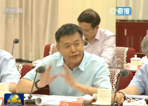 图为胡鞍钢教授在经济形势专家座谈会上发言