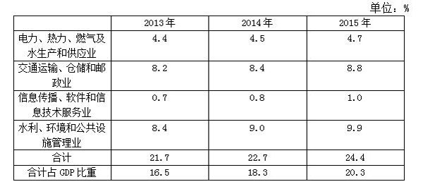 图为各类基础设施固定资产投资占全社会固定资产投资比重(2013-2015)