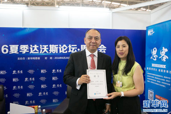 图为新华网副总编辑刘娟为齐晔颁发思客聘书。董博越 摄