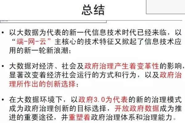 什么是政府3.0?具体是指在大数据环境下,在建构以每一个人为中心的构架下,政府更加主动开放数据,更加强调政府数据的分享与合作,实现共享与共治的模式。