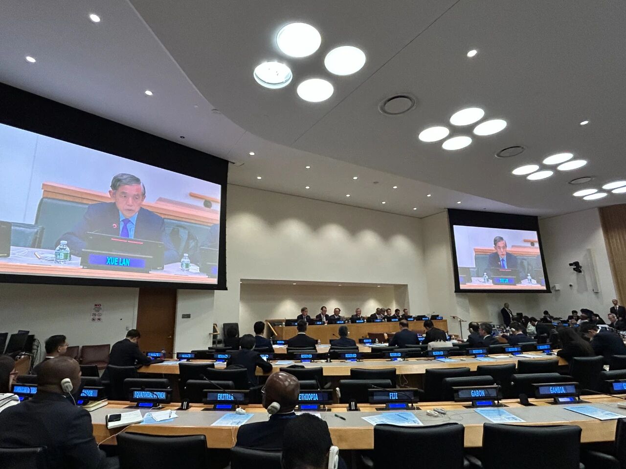 此次会议为期两个半小时,采用高级别对话形式。各国代表围绕如何确保不让任何国家在发展进程中掉队、构建更加包容的全球发展伙伴关系等问题进行交流。圆桌讨论则围绕三大核心议题展开,加速实施2030年可持续发展议程的具体行动、全球南方发展振兴的战略伙伴关系,以及人工智能在发展中的作用。薛澜教授作为学术界代表,在圆桌讨论中带来了中国在AI国际治理方面的实践经验和理论思考。出席圆桌讨论的成员还包括,中国国际发展合作署署长陈晓东、国务院发展研究中心副主任隆国强、赞比亚外交与国际合作部长穆兰博·海姆贝、古巴外交部长布鲁诺·罗德里格斯·帕里利亚、联合国工业发展组织总干事格尔德·米勒等。