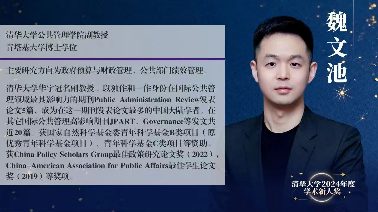 9月,清华大学2024年度学术新人奖表彰名单揭晓,共有10名优秀青年教师获此荣誉。公管学院副教授魏文池位列其中。