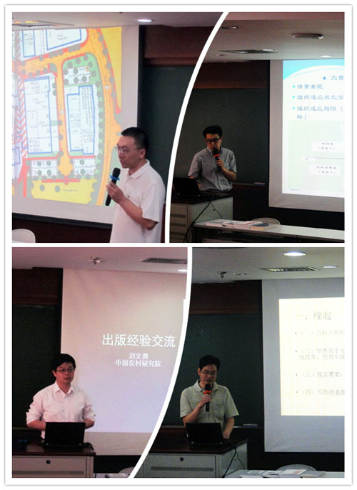 2013年,殷成志老师出版了《德国城乡规划法定图则:方法与实例》;刘文勇博士出版了《关于中国农地流转的一个制度分析》;刘正山博士出版了《大国地权:中国五千年土地制度变革史》;陶鹏博士出版了《基于脆弱性视角的灾害管理整合研究》。活动中,四位主讲人分享了各自著作的写作背景、出版经验,介绍了各自著作的学术框架、学术思想,并通过对各自研究领域的深入阐述,开阔了读者视野。