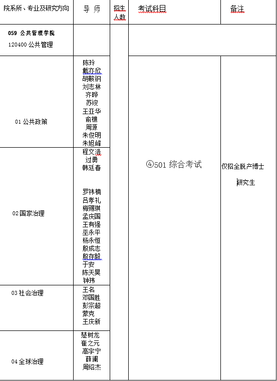 清华大学公共管理学院2019 年公共管理专业博士生招生目录