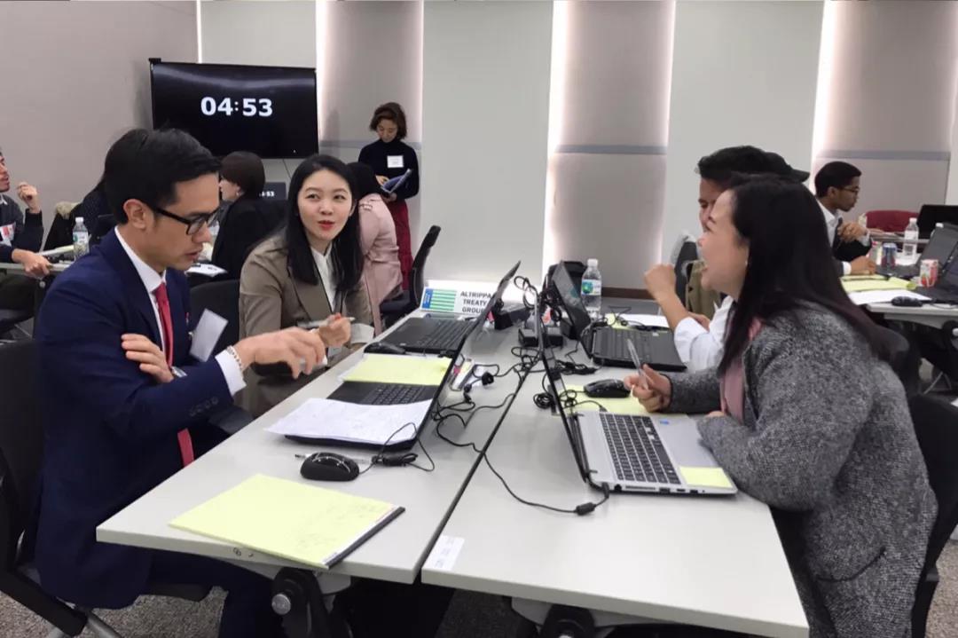 大赛评委综合模拟赛成绩、最后陈述展示表现、选手谈判及团队合作情况等因素进行打分。最后,大赛主办方韩国KDI School代表队成为本赛区优胜者。