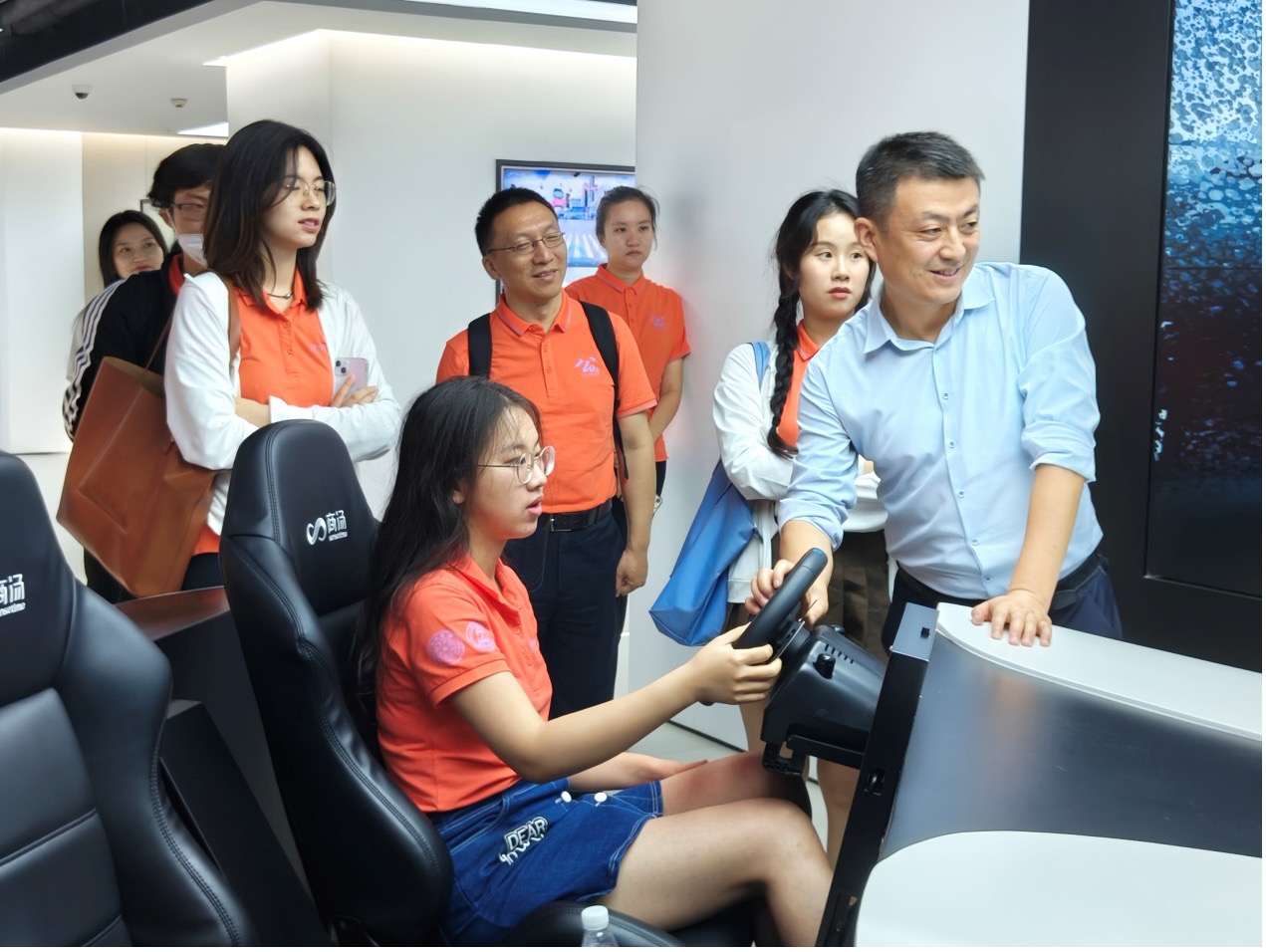 学生在西安商汤智能科技有限公司体验智能驾驶