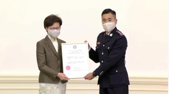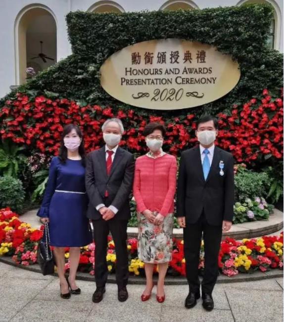 香港特别行政区2020年度勋衔颁授典礼于11月14日至11月16日在香港礼宾府宴会厅举行,行政长官林郑月娥向受勋人士颁授勋衔和奖状。