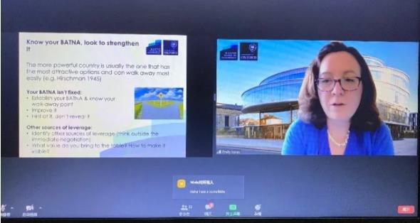 图为公共政策副教授(全球经济治理)Emily Jones讲授谈判与协商