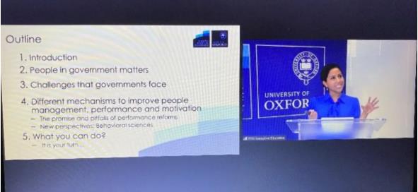 牛津大学布拉瓦尼克政府学院提供的课程名称为“变革中的英国:治理、责任、绩效和公共服务提供”,课程内容包括5大模块,分别是环境和体制、问责和领导力、谈判与协商、组织改革和发展能力、改革的实施。课程包括线上授课,涵盖了课程讲授、分组讨论、模拟辩论、角色扮演、案例教学、课堂小测等多种教学形式,以及线下学习,包括视频学习、面对面在线辅导、小组课题汇报和主题阅读等。