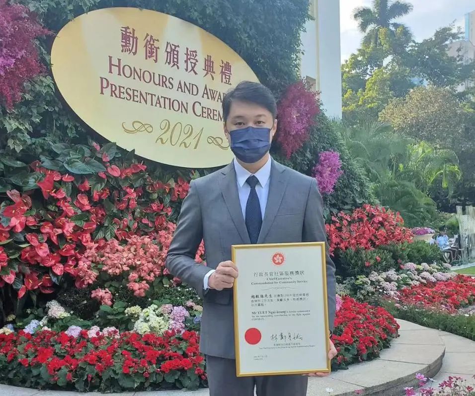 越毅强,时事评论员、政策研究主任、民建联社区主任,在民建联担任黄大仙支部副主席,在九龙社团联会担任常务理事、青年事务委员会副主席。另获特区政府委任公共职务,曾任黄大仙中分区委员会副主席等职位。在新冠疫情爆发后,越毅强一直致力在社区协助市民防疫抗疫,包括在2020年首季、防疫物资严重短缺期间,与团队搜集口罩、面罩、漂白水、消毒酒精等,向基层市民免费派发,与社会共渡时艰。疫情至今,越毅强一直坚守岗位,积极配合政府防疫政策、协助推动政府抗疫项目,例如鼓励及协助市民登记参与新冠病毒检测和接种新冠疫苗等,而在他服务的社区范围,曾有大厦须全座接受强制检测,他和团队在过程中致力呼吁和提醒居民,全力协助政府的防疫抗疫工作。