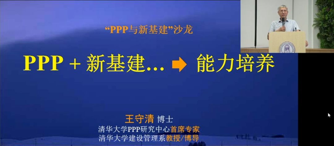 随后,王守清教授从“什么是PPP”切入,简介了PPP的基本概念和创新理念,包括广义和狭义PPP的区别。他指出,PPP的核心理念是长期合作、风险分担和提高效率,是一种以项目为主导,将政府、投资者、金融机构和公众等联系起来的合作模式,在基础设施和公用事业包括新基建等公共项目中得到了越来j越多的应用,其很多理念和做法也可以在商业项目中应用,最需要的是高端复合型人才针对具体项目进行创新性的思考和应用。他认为,有志于参与PPP项目特别是新基建发展的中青年才俊,可以结合PPP去规划自身的职业生涯,例如,在具备某类行业知识和经验的基础上,掌握项目管理和PPP理念与技能,并同时学习公共管理和工商管理知识,在了解国内市场规则的同时,也具备“一带一路”的宏观思维,把自己培养成为复合型人才,促进个人和所在组织的发展。