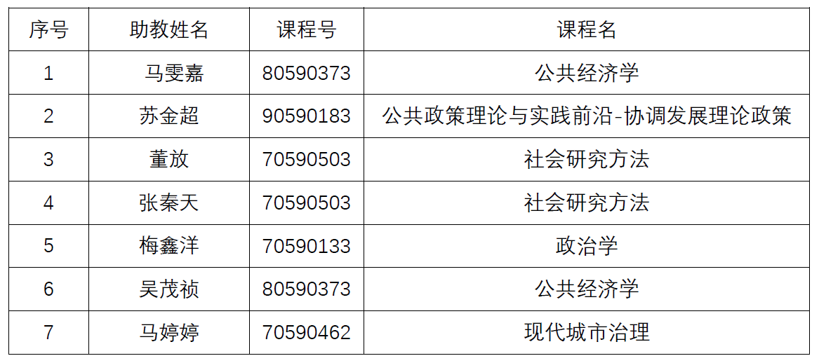 公管学院教学办每学期初组织开展助教培训工作,积极落实学校新上岗助教培训同辈分享模块工作,不断完善助教工作制度和激励措施,助力提升助教教学能力和综合素质。我院助教在近几年的评教工作中取得了较好的成绩。2023-2024学年度秋季学期,在对全校2526名助教的“助教水平认可度”和“助教投入认可度”评估中,我院有7名研究生助教同学得分处于全校前5%。
