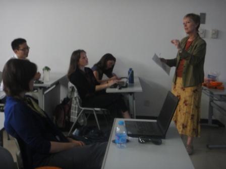 Peterson教授主要介绍了焦点小组这种研究方法。她从定义、使用环境、和其他研究方法之间的关系、该方法自身优势和缺陷,以及对缺陷的矫正等方面作了详细介绍,介绍中穿插生动的实例讲解。讲解过程中,Peterson教授对老师和同学们提出的问题,作了解答和回应。