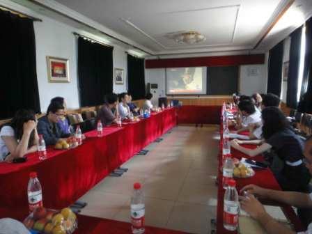 当日上午,围绕产权式农业发展模式,同学们先后与华都峪口禽业公司董事长孙皓等公司领导和沃德家禽养殖专业合作社的领导和社员进行座谈。通过孙皓董事长等人的介绍,同学们了解到,“产权式”农业发展模式是峪口禽业公司首创,这种模式通过与农民经济合作组织合作的方式,以资金、土地、劳力三种入股方式,让传统的农民成为投资人,为农民手中的“闲钱”找到一个很好的“生钱”途径。并且通过资金的入股,将农民培养成新型农业工人。