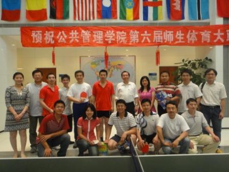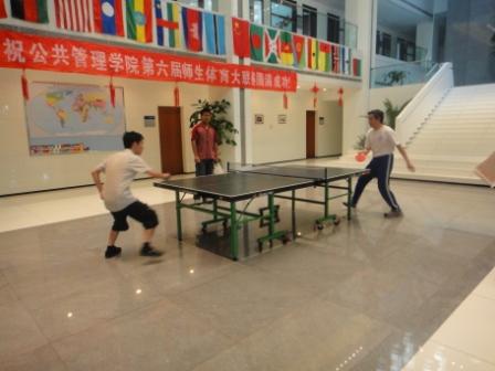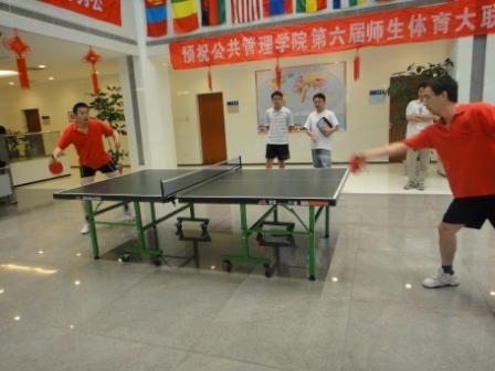 6月10日下午,我院第六届师生体育大联赛乒乓球决赛暨闭幕式在学院一楼大厅举行。乒乓球决赛在薛澜教授、胡鞍钢教授、国情所博士后童旭光、台湾所博士后张海峰之间进行。选手们发挥出色,吸引了众多师生关注,场面格外热烈。