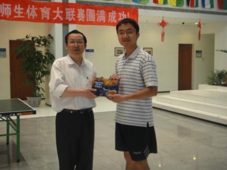 乒乓球赛结束后,我院党委书记王有强为本届体育大联赛各项比赛获奖队代表颁发了奖品。