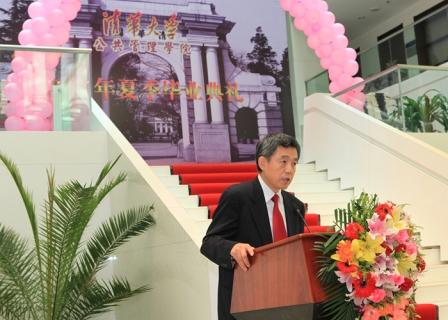 特邀嘉宾、清华校友、原中组部秘书长高世琦鼓励大家坚持理想、脚踏实地,将个人选择和国家发展联系在一起,以高度的责任感、事业心,投身于公共管理事业。特邀嘉宾、《北京共识》的作者、基辛格事务所执行主任雷默(Joshua  Ramo)结合国际形势,分析了毕业生面临的机遇和挑战,结合自己的人生体会,鼓励毕业生在公共事业中实现自己的人生价值。