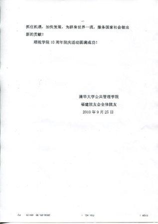 金秋十月,丹桂飘香。值此母院--清华大学公共管理学院10周年华诞之际,我们福建院友会,代表福建学子谨向母院致以最热烈的祝贺!并向各位老师致以最崇高的敬意!