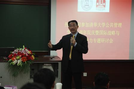 10月25日上午,清华大学公共管理学院十周年院庆暨第三届中国公共管理学术峰会--“国际战略与全球领导力”专题研讨会在公管学院321举行。国际战略与发展研究所所长于永达主持研讨会,公管学院副院长孟庆国致闭幕辞。原中组部领导干部考试与测评中心主任赵洪俊等政府官员、中国人民大学领导学研究中心常务副主任孙健敏等专家学者,以及回校参加十周年庆典活动的公管历届学员共90余人参加研讨会并进行了深入讨论。