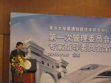 11月6日,清华大学高速铁路技术研究中心第一次管理委员会、专家指导委员会全体会议在主楼二层接待大厅召开。会议由清华大学副校长、高速铁路技术研究中心主任康克军主持会议。校长顾秉林在会上作了《中国发展高速铁路的战略意义》的报告;我院党委书记、高速铁路技术研究中心战略规划研究所所长孟庆国在会上作《高速铁路推动中国经济地理重塑——中国高铁与经济社会发展的关系》的报告。
