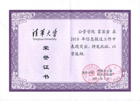 经评选,对在综合活动、信访、公文处理、信息报送等办公室各项工作中做出突出成绩的单位和个人予以表彰。我院共获得2010年综合活动先进单位、2010年信访工作先进单位、2010年信息工作先进单位(二等奖)三项表彰;院综合办霍岩岩获2010年信息报送工作先进个人表彰。