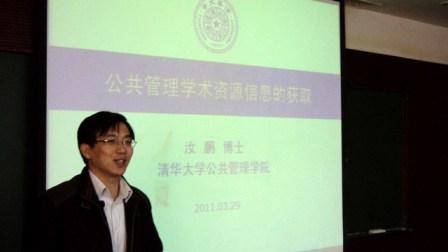 3月29日,博士生学术训练计划第27期在公管学院423教室举行,科技-教育发展战略研究中心主任助理汝鹏作题为《公共管理学术资源信息的获取》的报告。