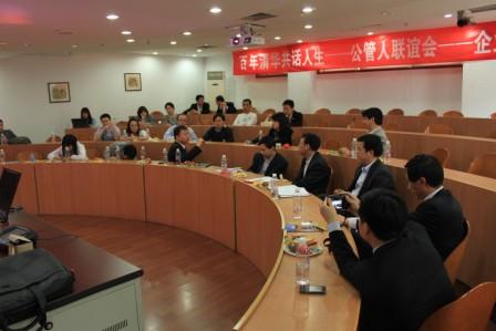 企业与NGO专场同样精彩热闹,福建省残联主席陈震、安徽省统战部工商联的陈翔、中国民生银行总行的范学伟、商道纵横总经理郭沛源、中国移动公司的刘立、中欧国际工商学院的高翔、中国社会工作协会儿童社会工作委员会的何定勇、北京请汉华教育科技有限公司执行总裁姜哲夫等院友应邀出席,这些院友中有人民团体的负责人,有企业的中高级管理人员,也有成功的创业者。学院王名老师、邓国胜老师和沈勇老师等作客联谊会,会场气氛十分热烈。几位老师、院友和到场的同学们共话清华生活,畅言人生经历。邓国胜老师与MPA院友就公管学院的MPA教育成效进行了交流,并鼓励在场学生把人民团体作为自己的职业选择之一。王名老师深入地阐述了对社会管理创新的看法,让与会者受益匪浅。高翔、范学伟、刘立等院友就职业选择和职业发展向在校生传授了许多经验,郭沛源和姜哲夫则是畅谈了自己充满激情的创业经历。最后,在场学生还向院友提了许多关于工作和职业选择的问题,院友们都热心地做了回答。