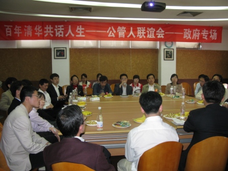 在政府专场中,福建建瓯市委书记卓立筑,河北省廊坊市市委常委、纪委书记刘万青,山西省阳泉市发改委的苏涛,国家科技部的李沛,北京市发改委的王昊等院友和到场的老师、在校学生一起,度过了一个温馨而又不失庄重的下午。几位院友首先表达了自己对清华的感恩之情,大家认为在清华学习是人生一笔不可多得的财富。之后,几位院友结合各自在政府工作的经历,和在校生一同探讨当今政府运作模式,并就“大部制”改革提出了各自的想法。几位院友还就公管的育人理念、教学模式提出了一些建议,比如制定专门的公共管理手册,供毕业生进行实际参阅;创造更多的教师地方挂职的机会,将所见所闻与教学结合,提升教学效果;让学术研究生能够有更多的机会到基层去锻炼,进行“干中学”的实践教学,提升学生的分析问题、解决问题的能力等。最后,党委书记孟庆国教授作了总结发言,他表示各位院友所提出的宝贵意见都很中肯,学院将为提升教学品质而不断进行努力和尝试,为国家培养更多更优秀的公共管理的专业人才。于安、彭宗超、杨永恒、沈勇、吴延军等老师参加了该专场的讨论。