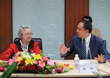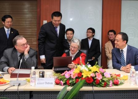 奥斯特罗姆教授访问公管学院,与学院师生进行座谈交流。2007年,埃莉诺·奥斯特罗姆教授曾应公管学院邀请,与丈夫文森特·奥斯特罗姆教授一起访问清华,这是她第二次来访。公管学院教授齐晔主持座谈会,胡鞍钢、彭宗超等学院教师、访问学者、博士后和学生代表参加座谈。