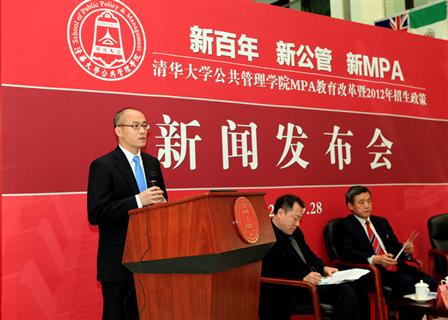 清华大学公共管理学院MPA教育改革暨2012年招生政策新闻发布会在学院一楼大厅举行。