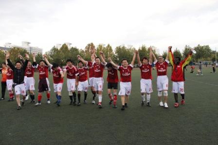 10月15日下午,在清华大学马约翰杯足球乙组第一轮比赛中,我院新组建的足球队在紫荆操场以4:1大胜本组种子强队医学院队,首战告捷。