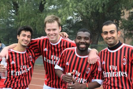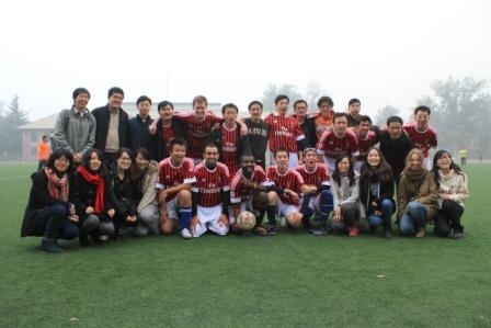 在小组赛中,我院足球队保持了高水平的训练和竞技状态。在教练郑振清老师的有力指导下,全队上下齐心协力,每周保证训练一至两次,场上攻防有序,配合默契。队员由博士生、MPA、MID、学术硕士生、青年教师构成,超过一半为本学期新加入,但在短期内达到了很好的相互协调适应。队员们在场上场下挥汗如雨,积极应战,努力拼搏,多名队员虽然受伤,但坚持比赛。场下同学也毫不逊色,为足球队呐喊加油,提供后勤支持。
