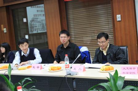随后,校研究生团委书记王磊老师为本次活动做了总结,他指出,文科院系共建要理解三层含义:为什么做,做什么,如何做。王老师认为,从小的层面看,文科院系在举办活动过程中有一些共通的特点,需要通过合作提高同学们的积极性;从中间层面看,整个学校存在理工科同化文科的趋势,营造良好的文科氛围,加强文科建设也需要合作;从大的层面看,历届领导人经历了“马上得天下”和“技术兴国”之后,必将向文科人才治国的方向演进,因此文科院系采取怎样的发展路径会对整个国家产生较大的影响。王磊老师建议,今年要把互促计划进一步推进,从文科院系学生最关心的学术和就业等方面出发,开展工作。同时要求同学们在活动过程中遵循两条原则,一是求实,力争把活动办得扎实而有特色,二是要坚持,争取圆满完成预定任务。
