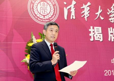 图为清华大学公共管理学院院长薛澜主持清华大学中国农村研究院揭牌仪式