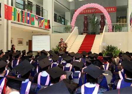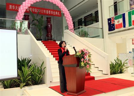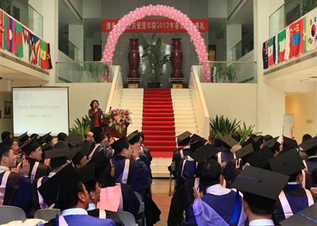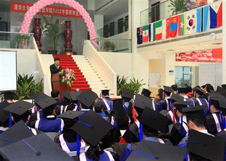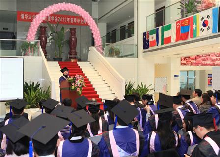 学院副院长、公共管理学位分委员会主席巫永平首先宣布我院2012年春季研究生毕业情况和学位授予情况。本次学院共有104位同学获得学位,其中获得博士学位5人,MPA专业硕士学位95人,MID硕士学位4人。同时,有5位同学的论文被评为清华大学公共管理学院优秀硕士论文,5位同学的论文被推荐为清华大学优秀硕士论文。罗桂连同学带领毕业生宣誓:“铭记师长教诲,肩负时代使命,弘扬清华精神,投身公管事业。”谭丽琳同学代表毕业生发言,感谢老师们一直秉持着“明德为公”的理念,引领同学们学会倾听国家和人民的召唤,学会把沉甸甸的责任放在肩上,各位老师渊博的知识、独特的风格和饱满的人格成为他们共同拥有的珍贵记忆,也将激励着他们勇往直前。北京市城管执法局副局长、我院2005级MPA毕业生王连峰作为院友代表向毕业生提出了寄语。海南省委组织部巡视员郝玉群作为嘉宾致辞,祝贺各位同学顺利毕业,取得学位,希望同学们在毕业之后也能继续保持学习的态度,不断进步。她感谢清华大学为海南培养了多批公共管理人才,感谢学院为海南省干部培养培训给予的帮助。