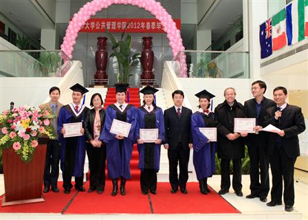 1月17日上午,公管学院2012年春季毕业典礼在学院一楼大厅举行。23位公管学院的教师、院友代表、嘉宾代表以及全体毕业生参加了毕业典礼。学院党委副书记谢矜主持典礼。
