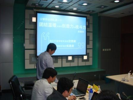 汝鹏向大家展示了“公管2011剪影”,用图片和文字展现了学院2011年的发展和开展的重要活动,并详细介绍了学生活动和院友工作。刘近文希望同学们能够多参加社会实践和学生工作,从各个方面多多锻炼自己。