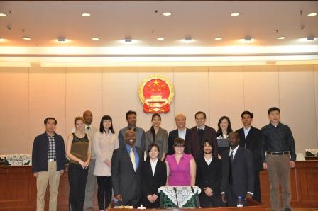 4月11日下午,于安教授带领我院11名留学生参观了北京市人大常委会议会厅,并在议会大厅进行了《中国宪法与行政法》课程的一堂现场教学课。市人大常委会法制办公室张引主任接待了我院师生一行并作为现场老师介绍了我国人民代表大会制度,北京市人民代表大会和各区县人民代表大会的工作情况,本届北京市人民代表大会常务委员会的组成和市人大常委会议会厅的结构和听众等情况。