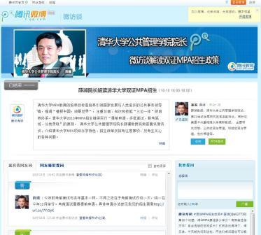 薛澜教授接受了腾讯微访谈,畅谈了中国MPA教育发展的历史背景与过程,也介绍了清华MPA教育发展的过程特点与新改革内容,并就2013年双证MPA招生政策问题回答了有关提问。