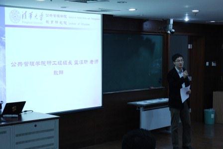 活动开始,公管学院研工组组长蓝煜昕老师和教研院研工组组长李锋亮老师先后致辞。蓝煜昕老师对来公管学院参加交流会的教研院同学表示了热烈的欢迎,他强调社会实践是清华的特色,参加实践活动对同学未来的就业具有重要的意义;李锋亮老师表达了对本次活动的期望,期待未来文科院系之间能够有更加密切的交流。