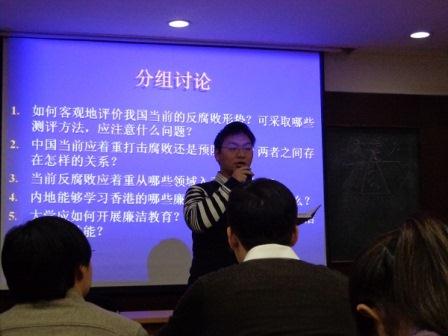 图为程文浩老师讲解中国当前反腐倡廉形势