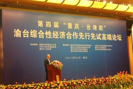 12月14日,渝台综合性经济合作先行先试高端论坛在重庆市举行。全国政协副主席李金华、中国国民党副主席林丰正、中国国民党中央评议委员会主席团主席、台北世界贸易中心董事长王志刚、重庆市领导张轩、陈和平、于学信出席论坛。我院台湾研究所巫永平教授应邀出席了论坛并发表了演讲。