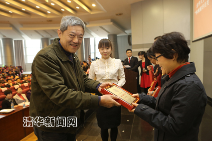 12月27日下午,清华大学2011-2012学年度优秀辅导员、学生工作助理表彰大会在主楼后厅举行。校党委书记胡和平、林枫基金捐赠人林炎志校友、校党委副书记史宗恺和副校长邱勇、校党委原书记贺美英出席大会并为获奖辅导员颁奖。