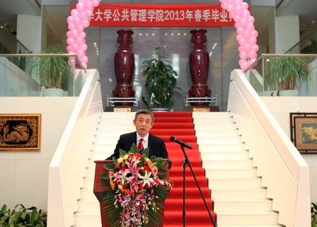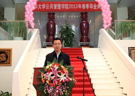 “在党的十八大召开之后,全中国全世界对中国新一代领导人进一步推进改革开放寄予了厚望。而公共治理领域的改革应该成为新一轮改革的突破点。在经济的发展已经奠定了良好的物质基础之后,社会的有效、和谐、公平、正义地运转需要公共治理体系的改革,需要制度设计的不断改良,需要政府服务理念的不断提升,也需要公民参与承担意识的觉醒。这场改革将会为中国的现代化奠定坚实的制度性基础,而我们大家就是这场改革的主力军。”院长薛澜对即将走出校门,参与这场改革的毕业生们提出了希望。他希望大家坚守理想,勇于创新,敢于承担风险,把个人的风险看淡一点,把大众的利益看重一点,做出别人不敢做出的选择、闯出别人不敢闯的天地;并期望大家在公共管理的广阔天地,鹰击长空、一展宏图。这句句有力的话语引起了现场热烈的掌声,将典礼推向高潮。