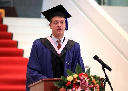 毕业生代表刘天一(Christain Nordby)发言