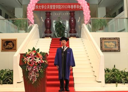 典礼首先由学院副院长、公共管理学位分委员会主席巫永平教授宣布我院2013年春季研究生毕业和学位授予情况。本次我院共有88人获得学位,其中获得管理学博士学位1人,管理学硕士学位1人,公共管理硕士(MPA)学位75人,国际发展硕士(MID)学位11人。同时,10位同学获得清华大学公共管理学院优秀硕士论文。