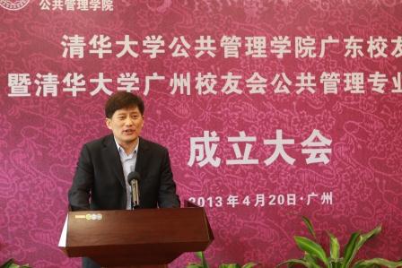 4月20日, 清华大学公共管理学院广东校友会暨清华大学广州校友会公共管理专业委员会在广州成立。广东省政协原副主席、清华广州校友会会长石安海同志,清华大学公共管理学党委书记孟庆国,政府研究所所长、学术委员会主任于安,清华大学校友总会副秘书长贺臻,学院院友办主任蓝煜昕,国际合作与交流办副主任于雁芳出席成立仪式。学院高级公管班多位院友、清华广州校友会各兄弟分会的嘉宾以及来自广东各个地区的公共管理学院院友共70余人齐聚广州,共同庆贺广东校友会的成立。