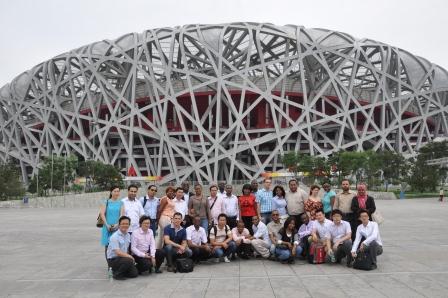 座谈会后,中冶安排留学生们参观了他们最重要的工程项目之一—鸟巢,之后还带领大家参观了水立方,以亲历奥运比赛场馆。当看到如此庞大、结构复杂但又设计美观的两个建筑时,学生们不禁赞叹中国的建筑美学和高科技使不可能成为了可能,并纷纷合影留念。参观过程中,学生们也十分关心奥运会结束后场馆的使用情况,对其赛后场馆改造和对公众开放的举措表示赞赏。