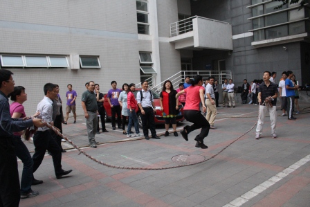 此次友谊赛秉承着“友谊第一、比赛第二”的原则,共有拔河、跳大绳两个项目,目的是为公管学院的全体新生提供一个感情建设平台。共有来自2013级MPA-E、MPA-集中班、博士班及硕士班的100多名同学参与这次比赛,孟庆国老师和杨永恒老师担任拔河比赛的裁判,公正公平,每一个班集体也都做了精心准备,纷纷派自己的主力队员参与到拔河和跳大绳的项目中。在一轮轮振奋人心的呐喊助威声中,最终2013级MPA—集中班获得了拔河和跳大绳两个项目的第一名,成为了无可争议的冠军王者,而2013级硕士班则在两项比赛中惜败给MPA—集中班,总成绩位列第二。孟庆国老师为每个获奖班级颁奖并合影。